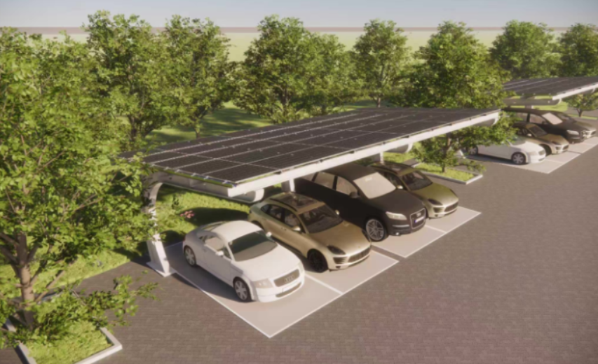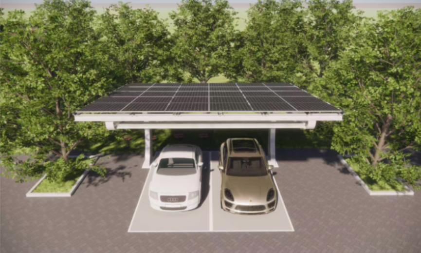 光伏发电 + 储能电池 + 充电桩 + 车棚防护,四合一设计,满足用电、充电、遮阳、遮雨、防护等全场景功能需求,光储充智能联动,高效提升绿电利用率